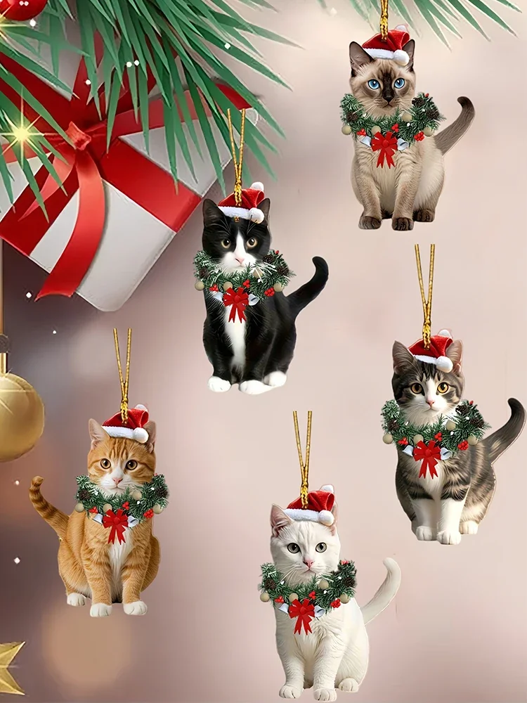 1Pc Christmas Wooden Hanging Ornament, Cute Cat Christmas Pendant Festive Xmas Tree Hanging Decoration for Holiday Home Door Wall Decorations